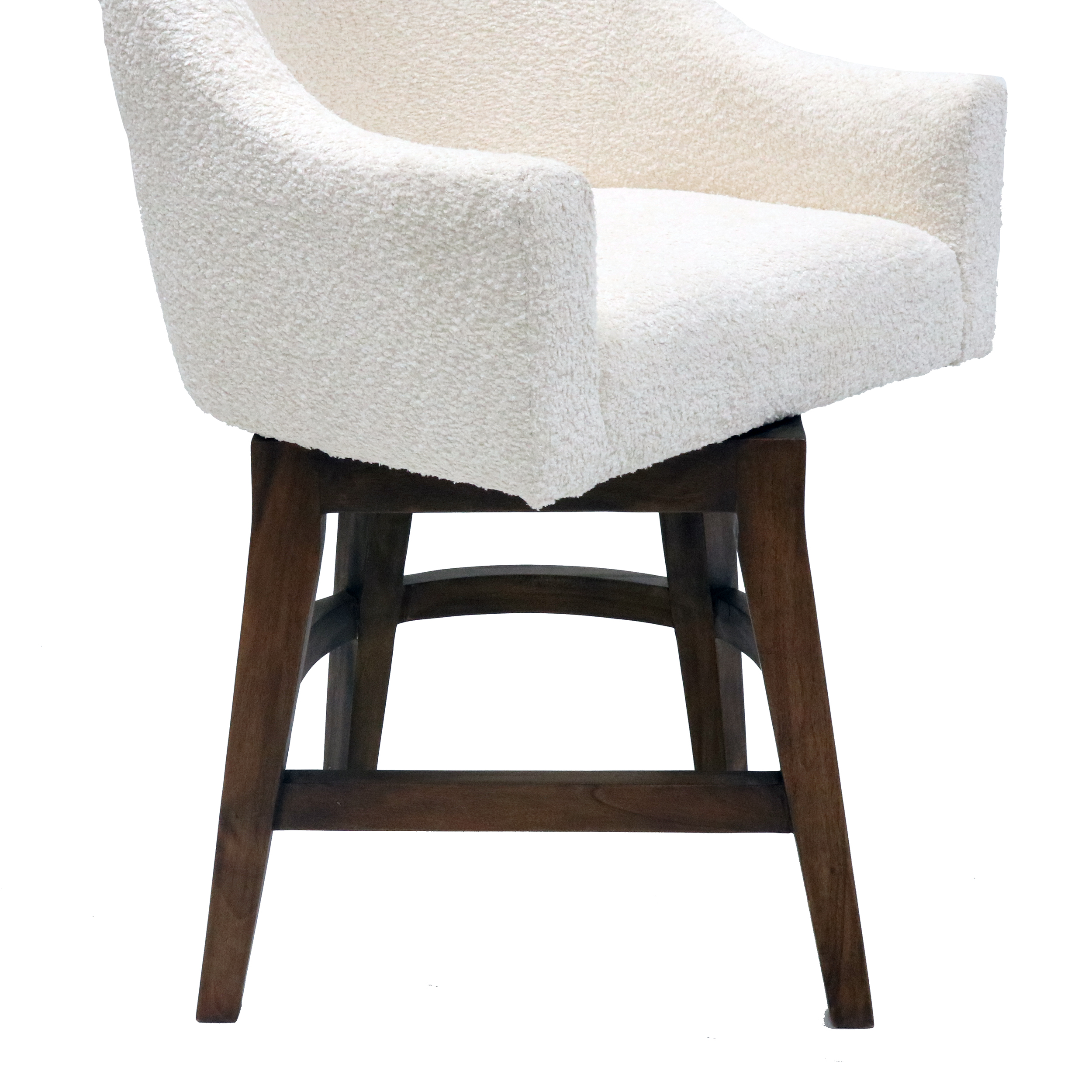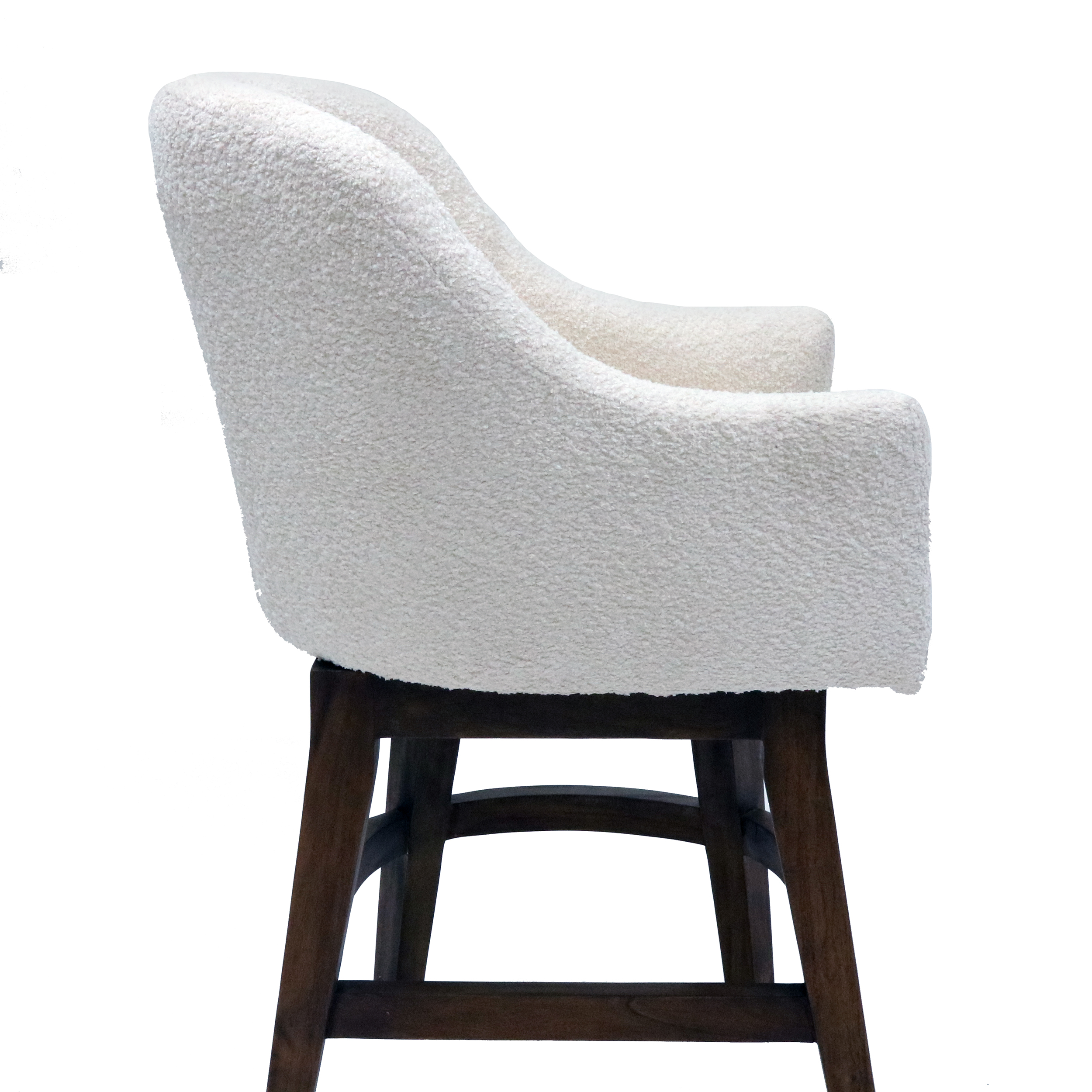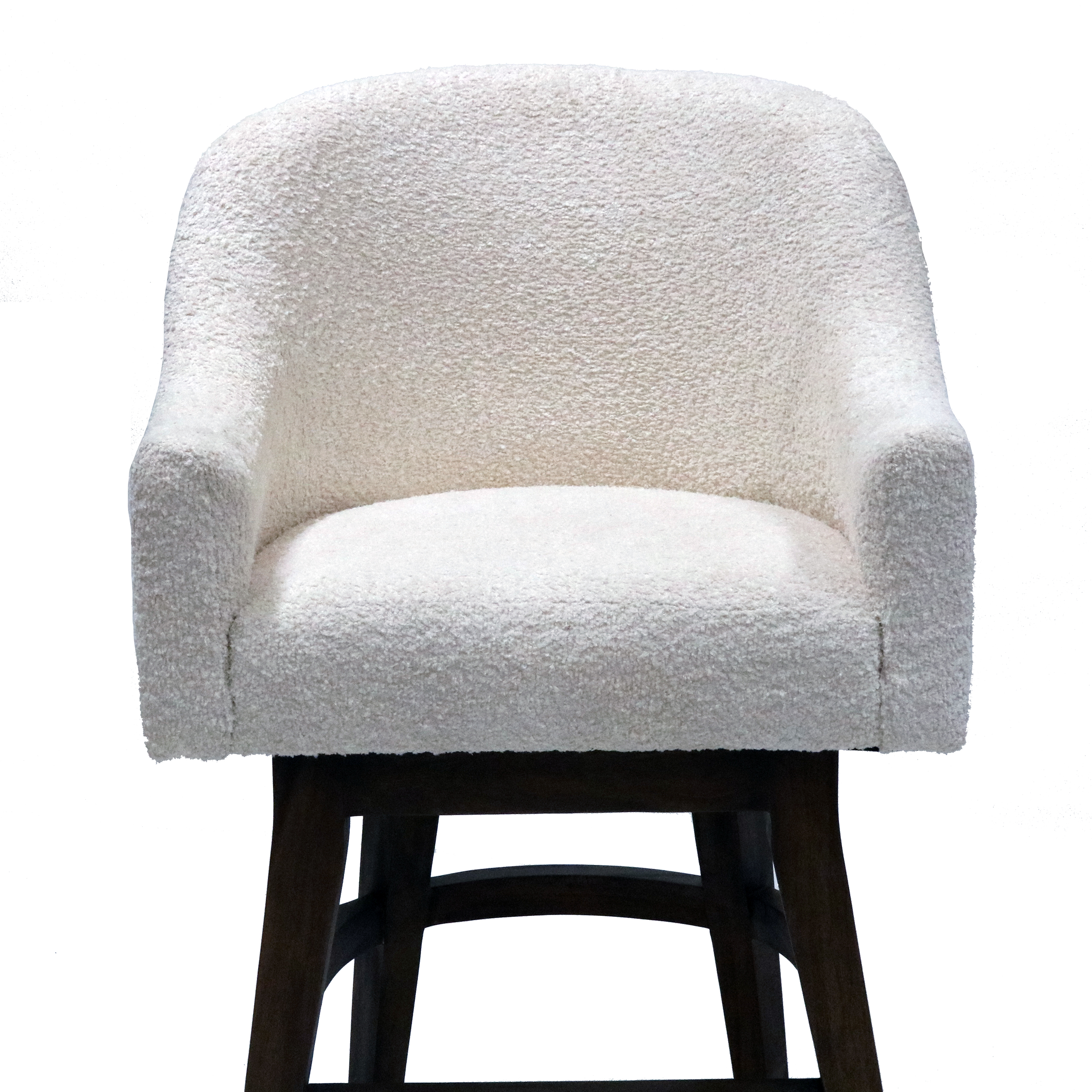 The Aspen Transitional Swivel Barstool S040BA-1 is a modern yet timeless seating solution that seamlessly combines comfort, style, and functionality. Designed with a fully upholstered barrel-style seat, this barstool offers an inviting and plush seating experience. The curved backrest and integrated armrests provide ample support, making it an excellent choice for extended seating, whether at a home bar, kitchen island, or commercial setting. The luxurious fabric upholstery enhances aesthetic appeal and comfort, making it a statement piece in any space.