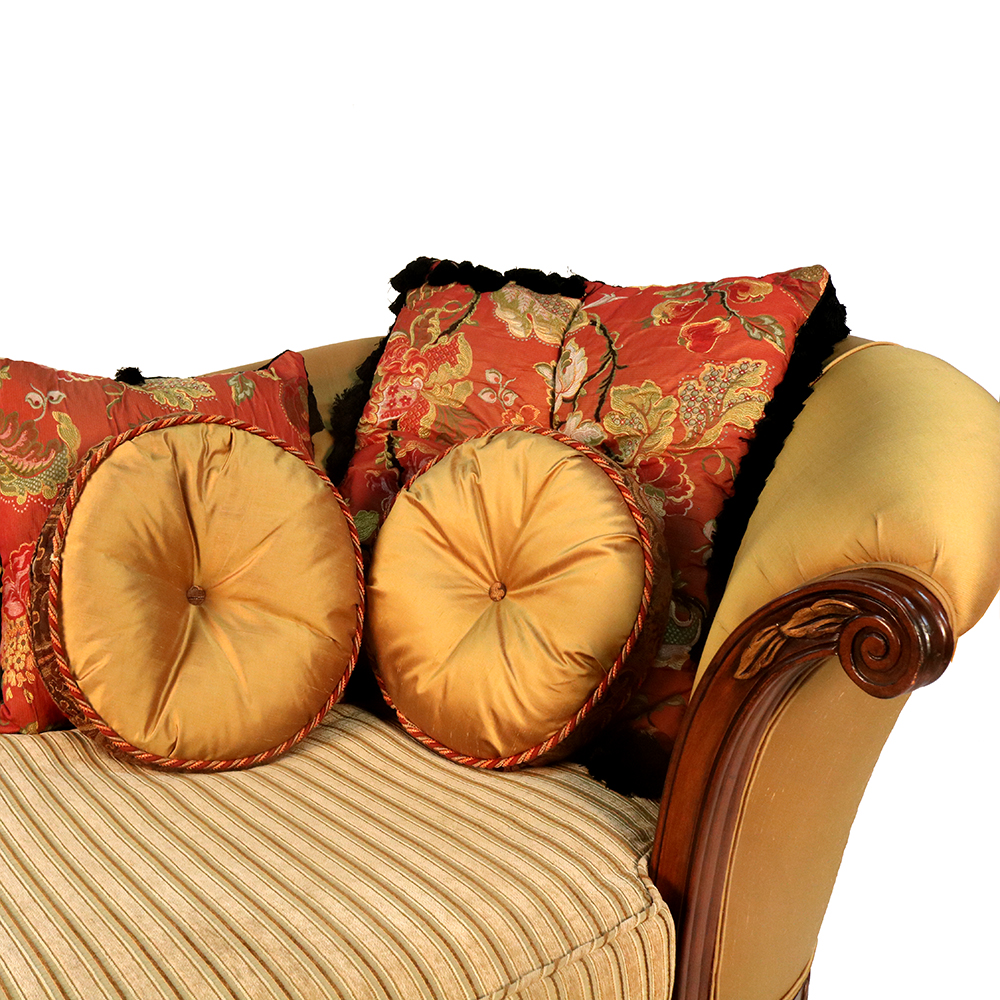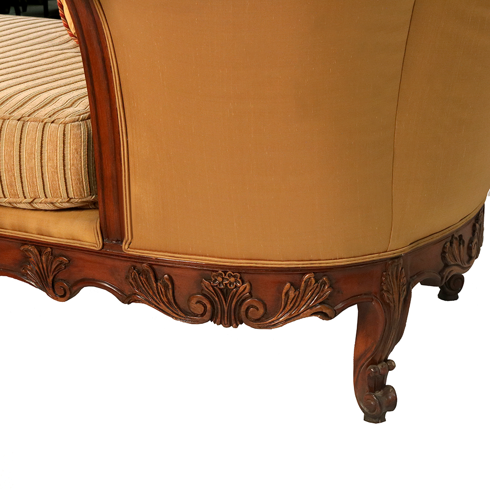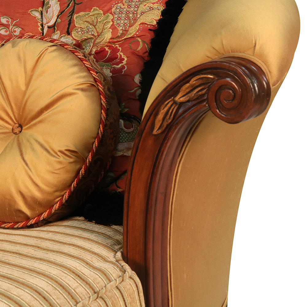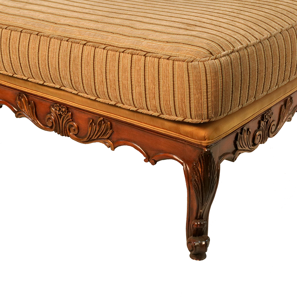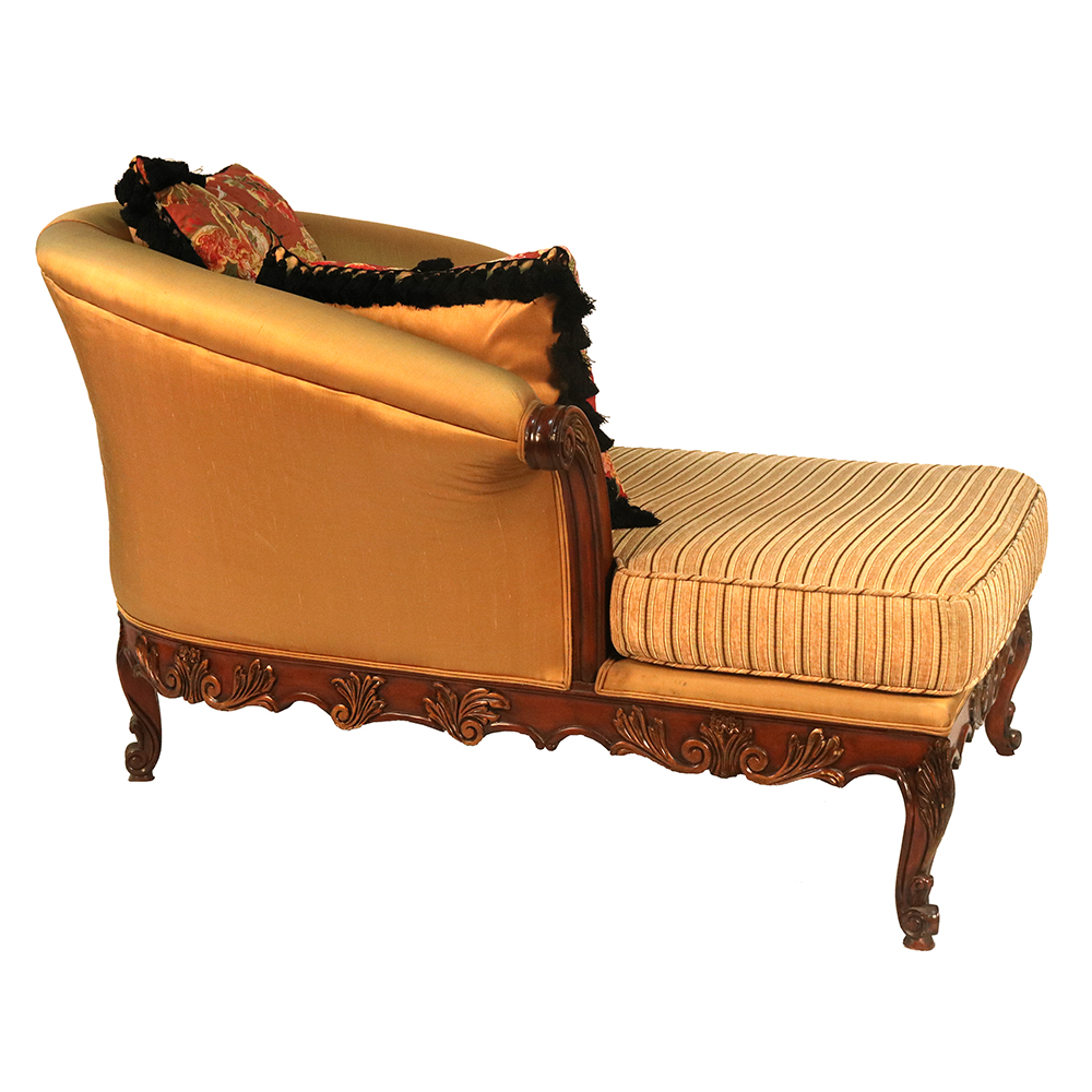 This elegant Chaise Lounge is made from solid hardwood and finished here at Sigla Furniture Factory and can be custom-made in different finishes and fabrics in our Los Angeles Factory, California. As shown, this beautiful Chaise Lounge adds beauty and comfort to your home.