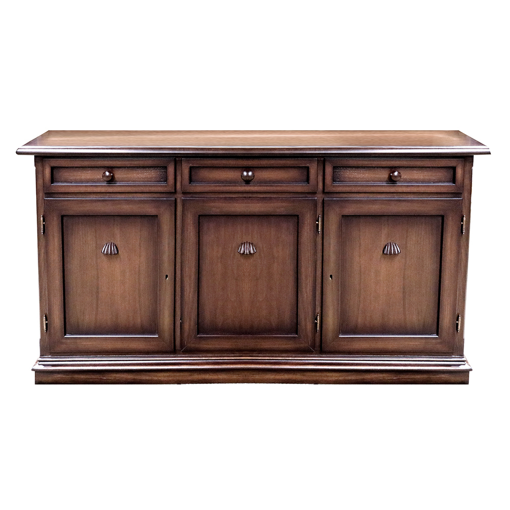 A standout feature of the Rwanda Buffet is its exquisite shell-shaped cabinet knobs, adding a touch of character and charm to the piece. The beveled edges and subtly curved base contribute to the buffet’s timeless appeal, while the sturdy construction guarantees reliability and stability. The four-door version is also available upon request.