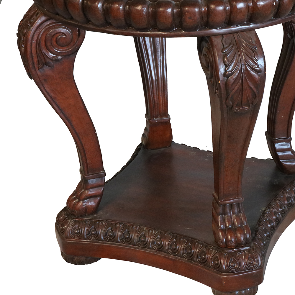 Detailed carving on the legs includes elegant acanthus leaf motifs and other nature-inspired designs, which add texture and depth to the piece. The pedestal’s base is adorned with refined floral patterns that continue the traditional theme, ensuring a cohesive look from top to bottom. Every element is meticulously crafted to reflect the high standards of Sigla Furniture, where quality and style come together to create exceptional furniture.