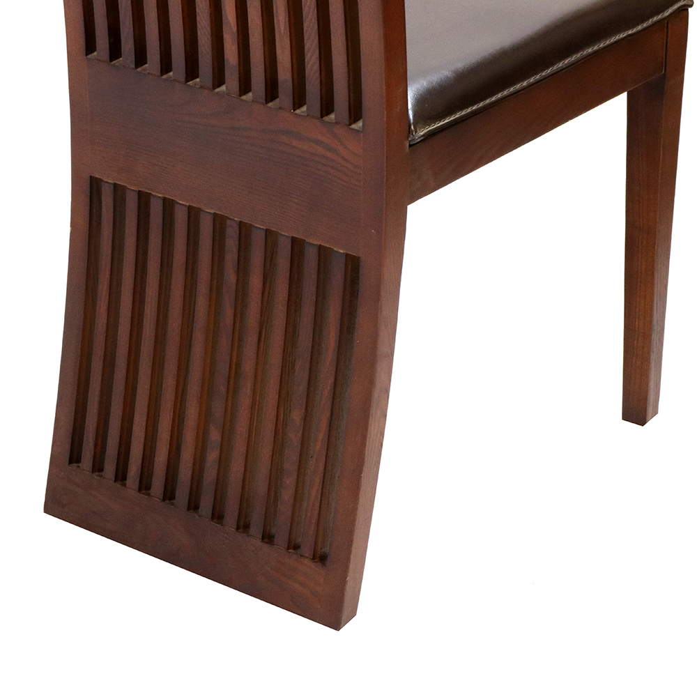 The seat is upholstered with high-quality faux leather, providing both comfort and durability. The soft cushioning ensures that each meal or gathering is a comfortable experience, while the smooth faux leather upholstery adds a touch of luxury to the overall design. The deep, espresso-colored faux leather complements the chair’s dark wood finish, creating a cohesive and elegant aesthetic.